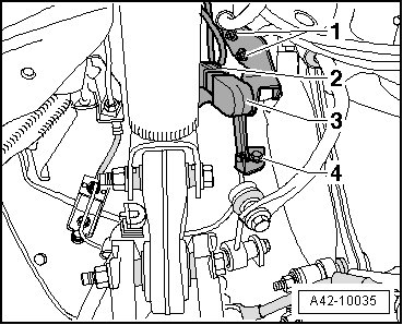 - Tighten the bolt - 4 - for the coupling rod - 3 - to 10 Nm.
