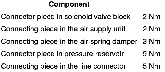 If the connection leaks, the air line can be shortened by 10 mm and a new connecting piece installed. Refer to => [ Connector Piece, Replacing ]. Connector Piece, Replacing