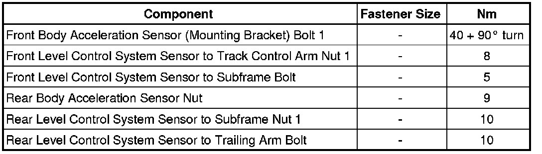 Fastener Tightening Specifications, Level Control System