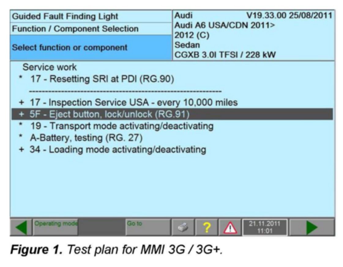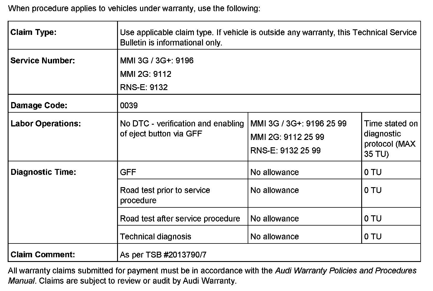 For vehicles without Navigation based DVDs, the disc slot is not locked during production. If the eject button operates as described above, follow the procedure to enable the eject button as explained below.
