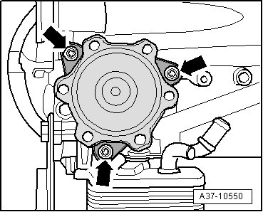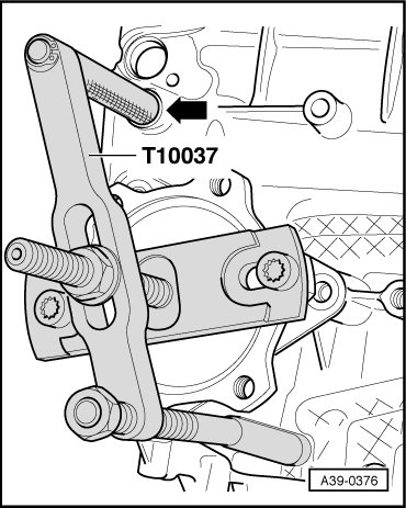 - Remove left flange shaft by fastening Puller (T10037) to transmission housing - arrow -.