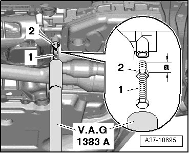 - Position Engine/Transmission Jack (V.A.G 1383 A) plunger on bolt head and slightly raise transmission, as shown in illustration.