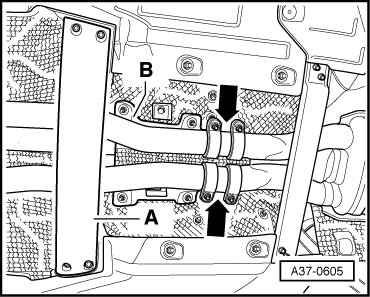 - If necessary, attach rubber sleeve for selector lever cable - B - to shift mechanism cover.