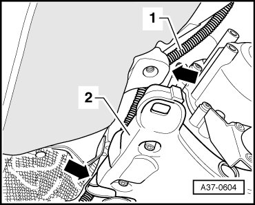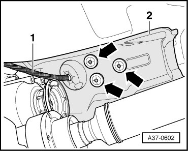 - Guide noise insulation - 2 - over selector lever cable - 1 - on shift mechanism cover.