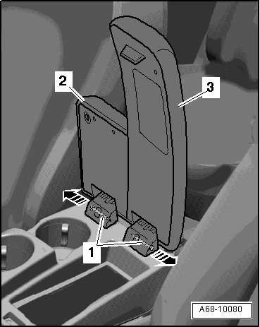 - Remove right padding - 2 - or left padding - 3 - by pulling up out of mounts.