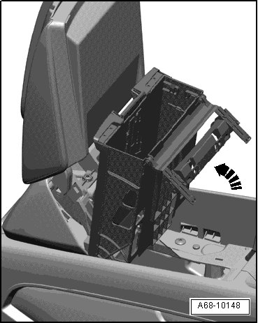 - Swing drawer upward - arrow - while carefully guiding shaft out of center console.