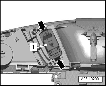 - Release retaining springs - arrows - and carefully press interior locking switch - 1 - out of inside door release mechanism.