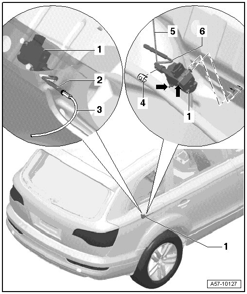 - Disengage the emergency release on the Comfort system central control module (J393) bracket and remove it through the tank flap opening.