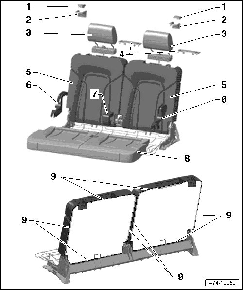 • Removing and installing, refer to => [ Backrest Cover and Upholstery ] Backrest Cover and Upholstery.