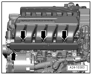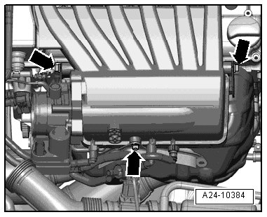 - Rotate intake manifold to left - arrow - and remove.