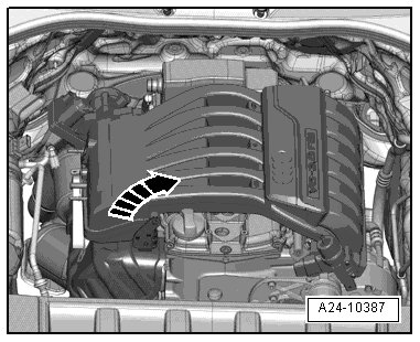 - Disconnect crankcase ventilation hose - arrow -.
