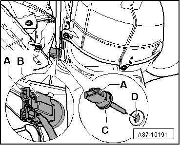 - Disconnect harness connector - B - from Fresh Air Intake Duct Temperature Sensor.