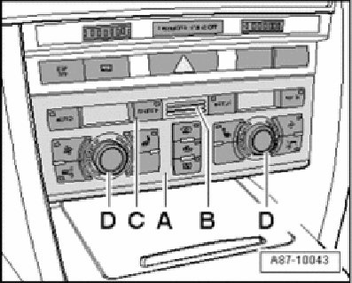 - On the A/C control head Climatronic Control Module J255 "Comfort" version - A -, both control knobs - D - can be pulled off and thereby be replaced individually.