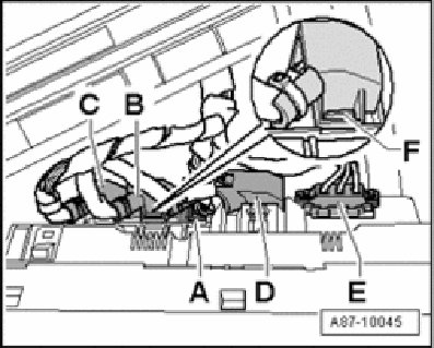 - Front A/C control head Climatronic Control Module J255 is not always connected to terminal "15", therefore after voltage supply interruption (via connector - D -) wait still at least 30 seconds to protect the electronics until the remaining connections are disconnected.