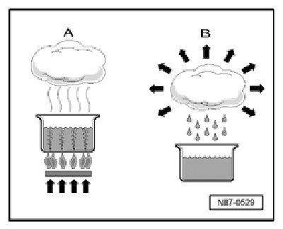 When water is heated in a vessel (heat absorption), water vapor can be seen to rise. If the vapor is further heated through heat absorption, the visible vapor turns into invisible gas. The process is reversible. If heat is extracted from water in gaseous form - A -, it changes first to vapor - B -, then to water and finally to ice.