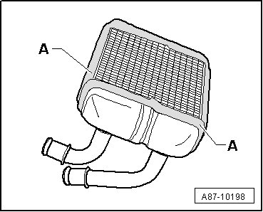 - Check foam seals at heater core - A -, they must be glued on without gaps and must not be damaged.