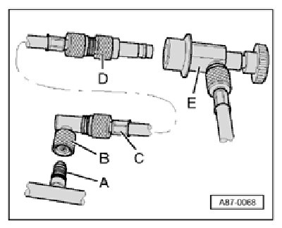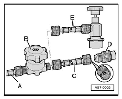 D - Adapter with service connection V.A.G /2 (for connection of quick-release coupling of A/C service station - E - )