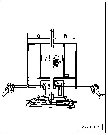 - Position the (VAS 6430) at a distance of - A - 150 cm +/- 2.5 cm from the center of the wheel hub on the front wheels to the beam on the (VAS 6430) as shown in the illustration.