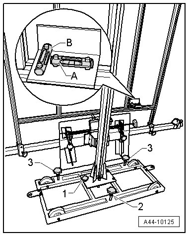 - Secure the (VAS 6430) by tightening the bolts - 2 and 3 - slightly. (This prevents the (VAS 6430) from rolling away.)