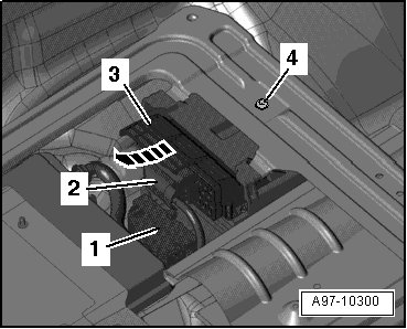 - Release securing clips - arrows - and remove control module - 3 - as far as stop. If necessary, release securing clips again and remove control module from mount.