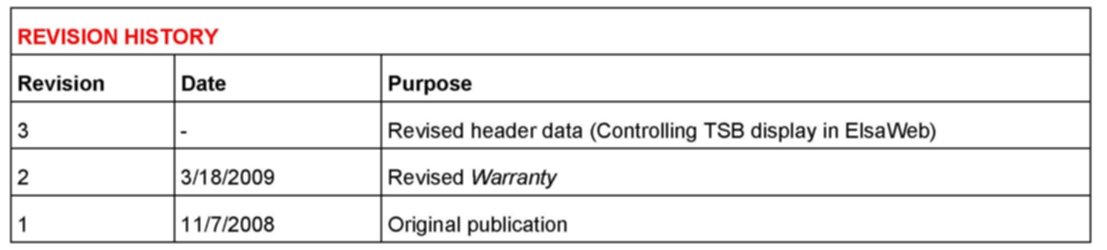 All parts and service references provided in this TSB are subject to change and/or removal. Always check with your Parts Department and service manuals for the latest information.