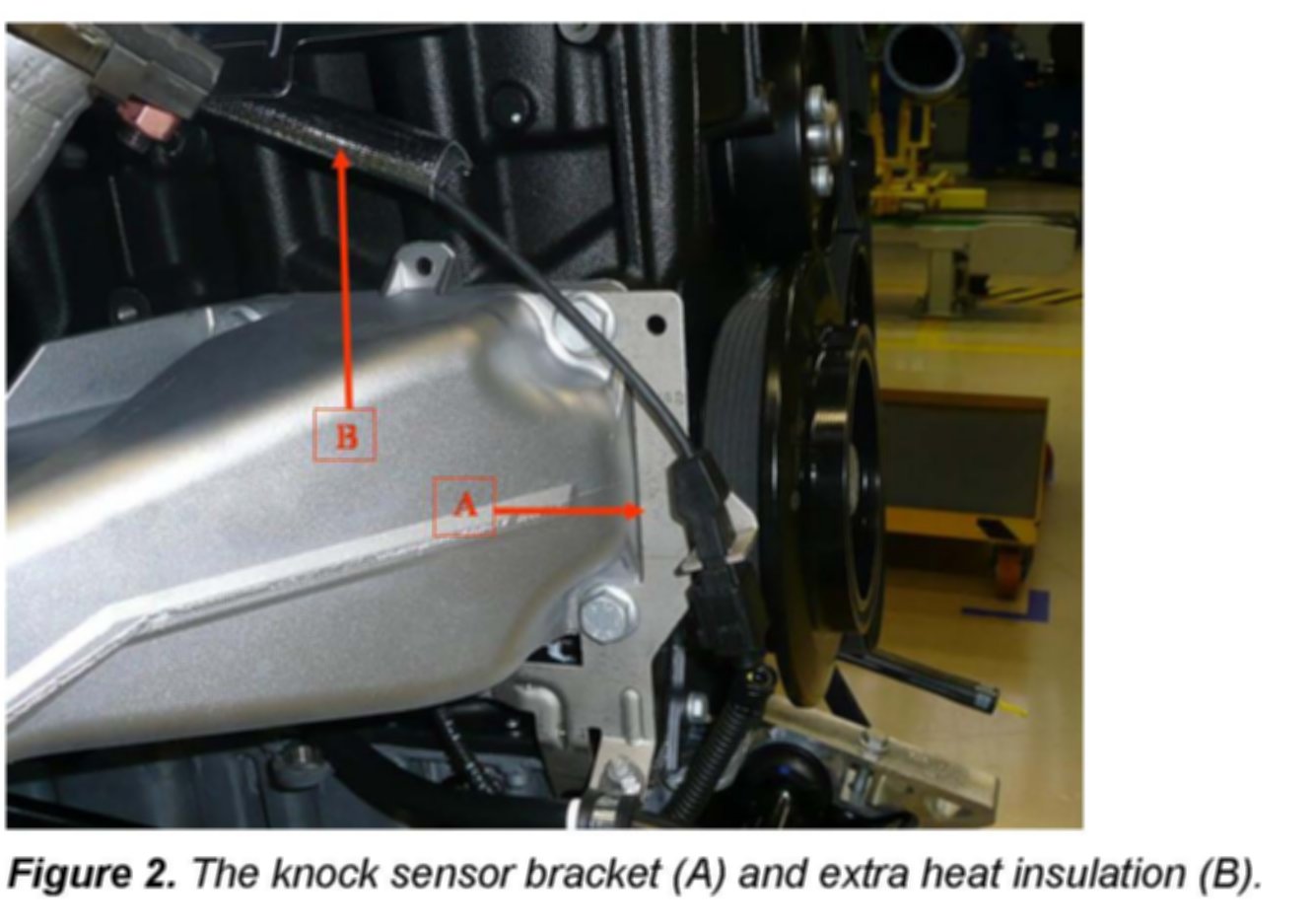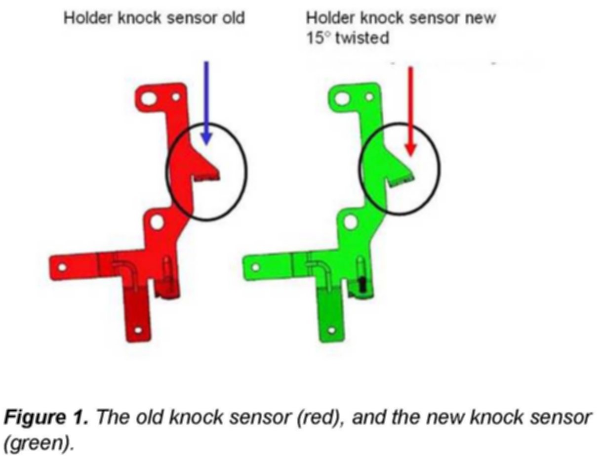 Improved knock sensors with extra heat insulation and a special bracket for a modified installation position.
