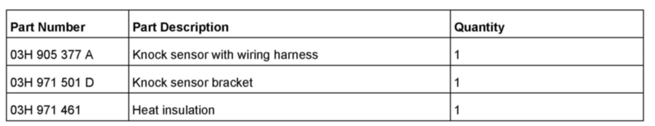 1. Replace knock sensor G61 with wiring harness 03H 905 377A.