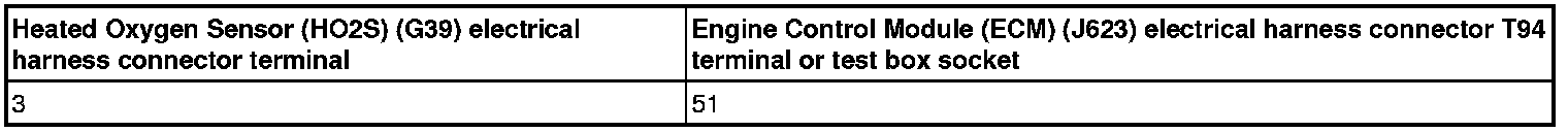 - Using a multimeter, check the Heated Oxygen Sensor (HO2S) (G39) electrical harness connector terminal 3 to the Engine Control Module (ECM) (J623) electrical harness connector T94 terminal 73 for resistance.