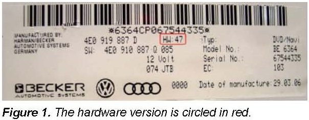 2. If the DVD is OK and the symptoms remain, check the hardware version of the navigation system (Figure 1). The hardware version can also be determined via the VAS tester.