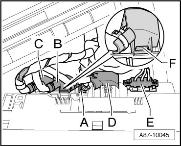 • The Climatronic control module is not always connected to terminal 15, therefore after voltage supply interruption (via connector - D -) wait still at least 30 seconds to protect the electronics until the remaining connections are disconnected.