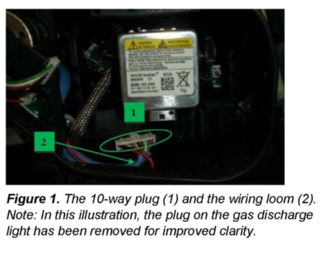 1. Check for tight fit of the 10-way plug (Figure 1, Point 1) in the headlights by pulling gently.