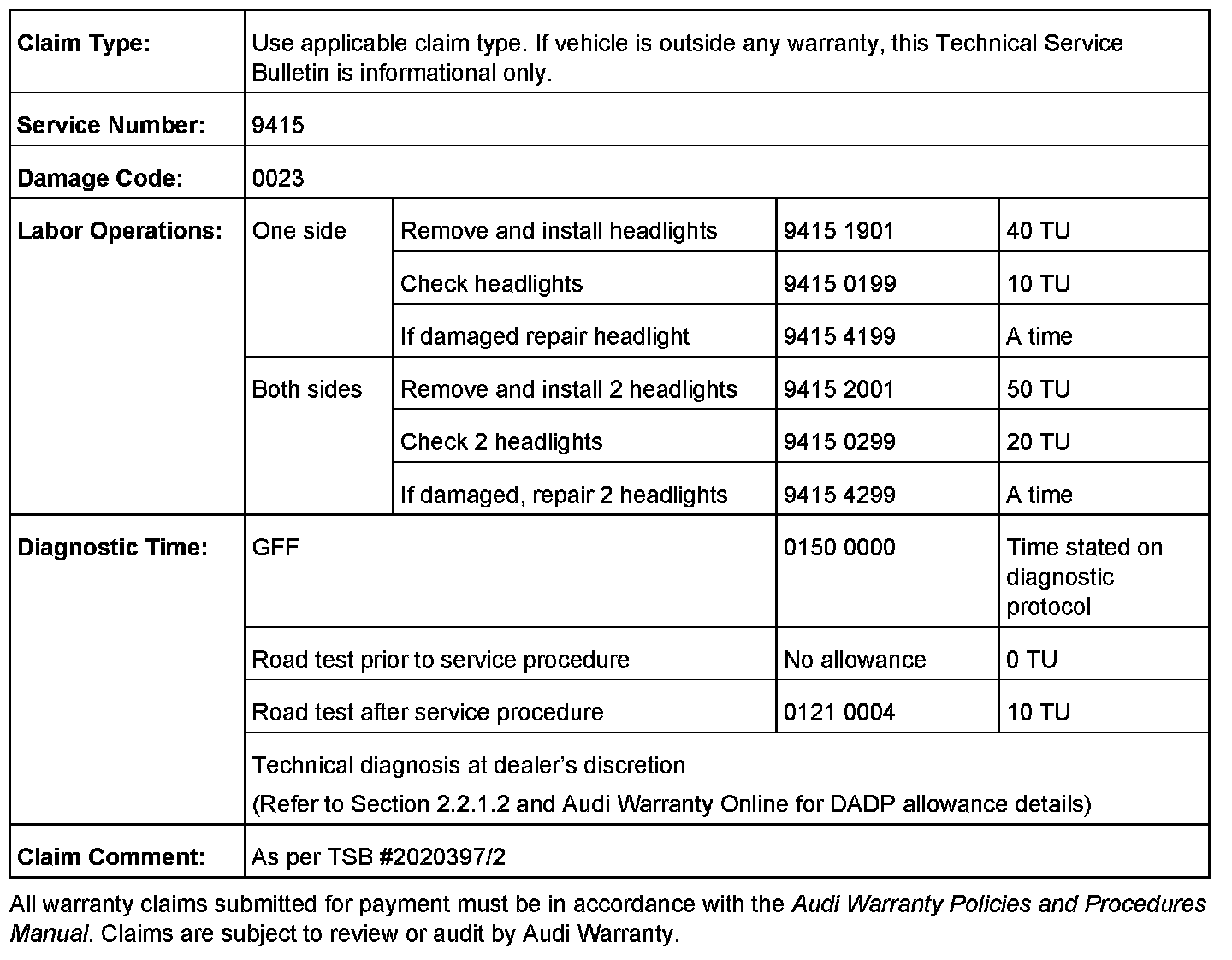 Supersedes Technical Service Bulletin Group 94 number 09-10 dated April 6, 2009 for reasons listed below.