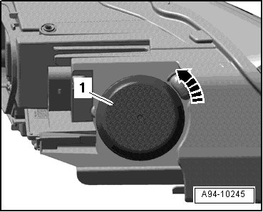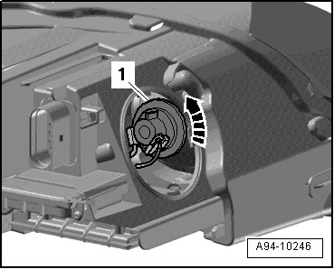 - Turn housing cover - 1 - counterclockwise - arrow - and remove from headlamp housing.