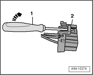 - Slide a small screwdriver - 1 - between securing tab - 2 - and connector housing.