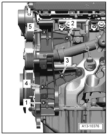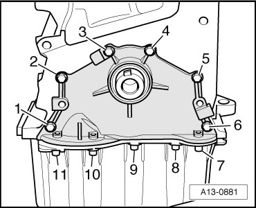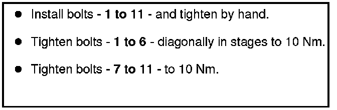 - Tighten bolts - 1 to 5 - in 2 stages in sequence as follows: