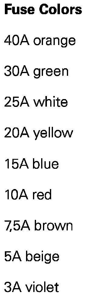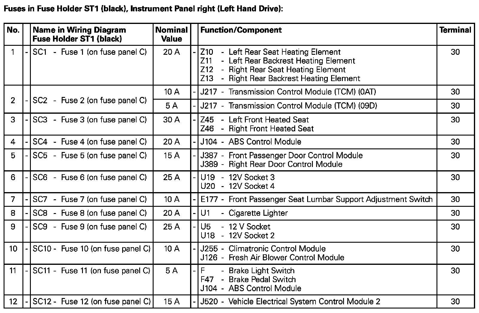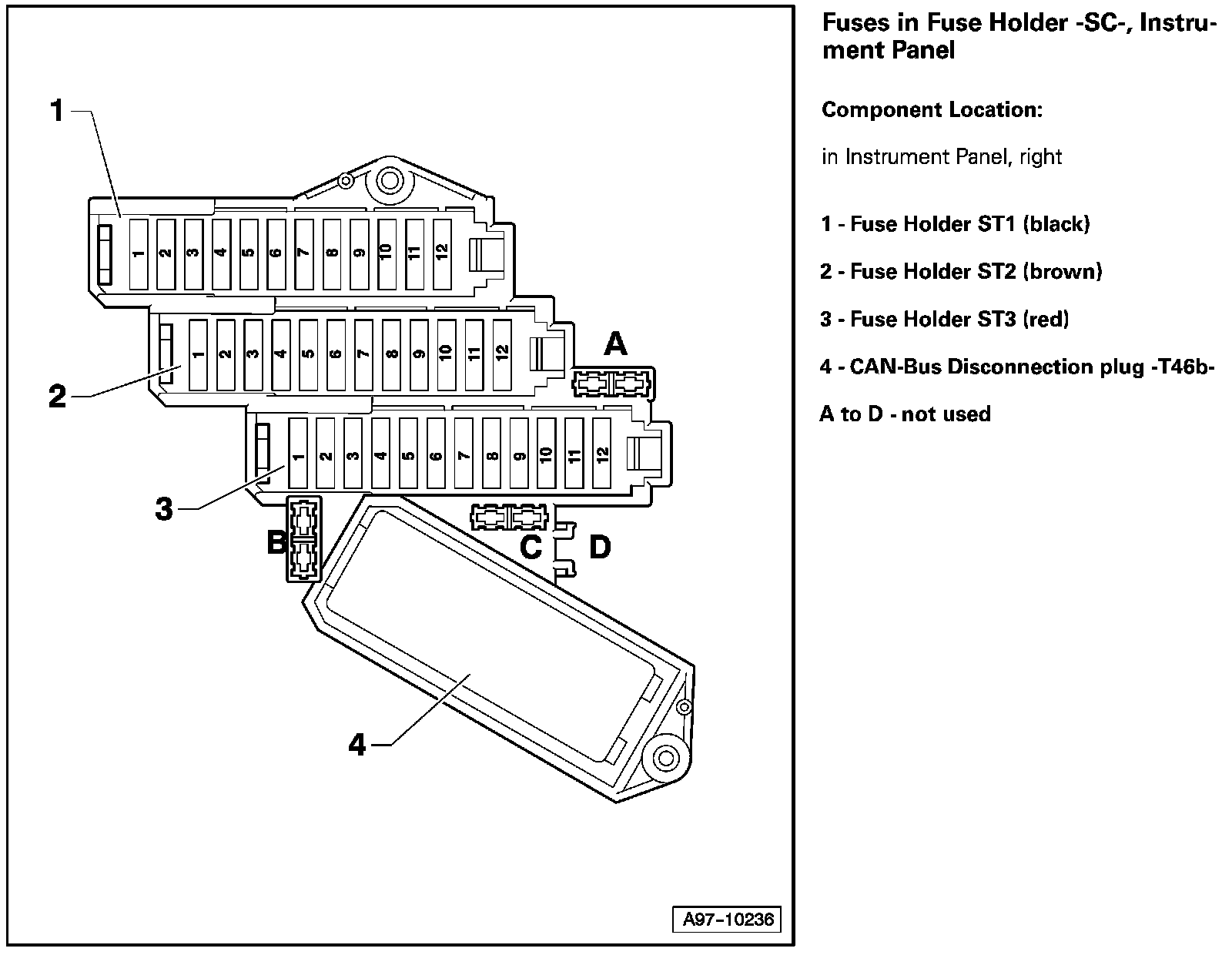 Fuses In Fuse Holder ST1 (Black), Instrument Panel Right: