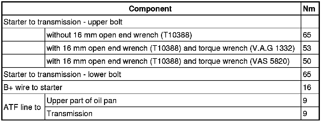 - Remove the bolt - 1 - and remove the starter.