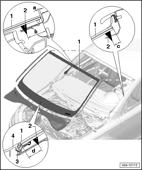 • Distance from the edge of the windshield to the roof frame, refer to => [ (Item 2) Adhesive Sealing Material ].