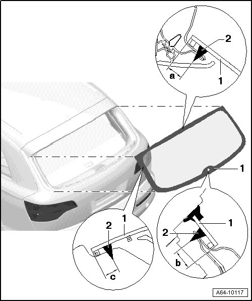 • When reusing the undamaged window, cut rest of adhesive material on window and flange with (V.A.G 1561 A) and (V.A.G 1561/8) so it is even, but do not remove completely.