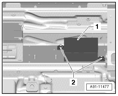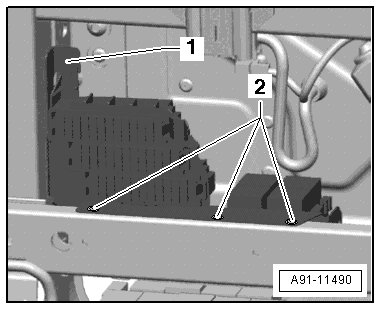 - Remove the bolts - 2 - from the fuse carrier - 1 - and move the fuse carrier - 1 - to the side.