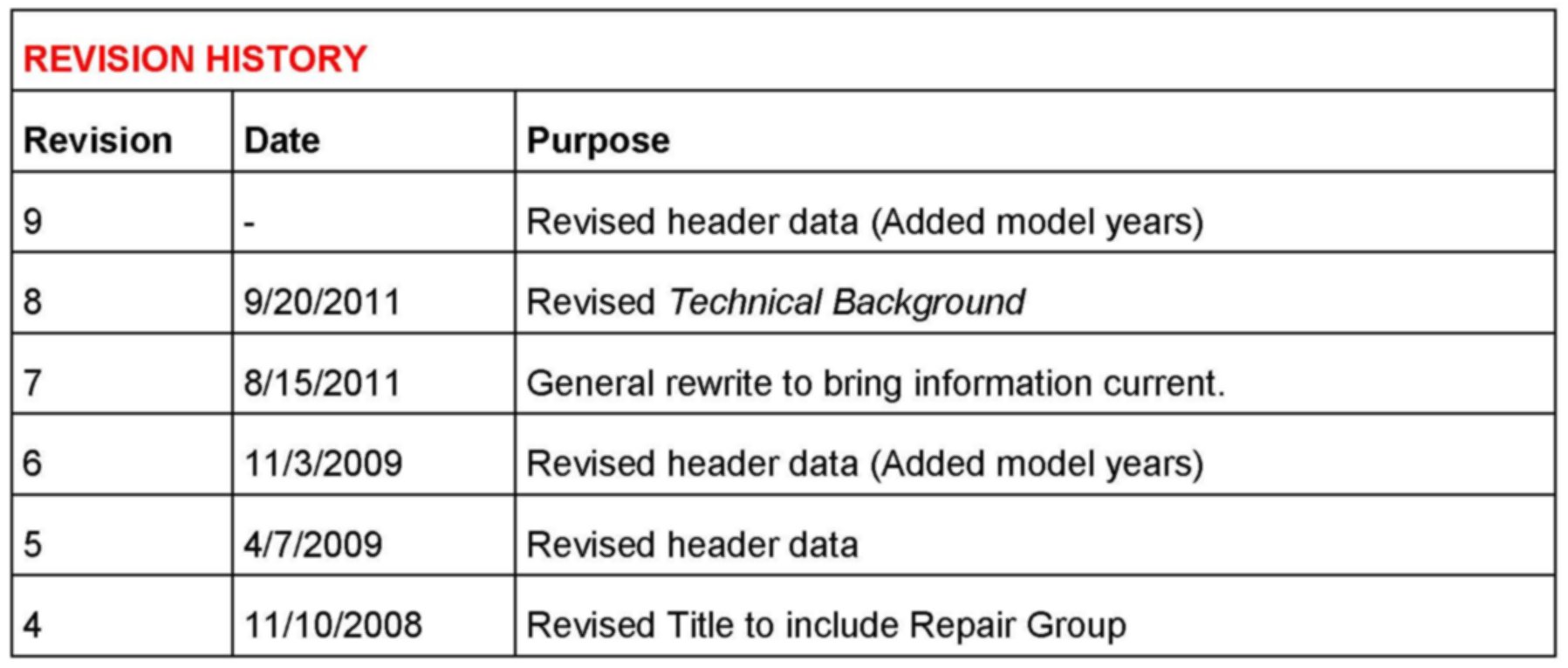Supersedes Technical Service Bulletin Group 91 number 11 - 09 dated September 20, 2011 for reasons listed below.