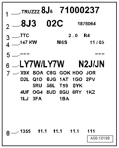 • The "engine code" is on the vehicle data label in the Maintenance booklet and in the spare wheel recess or on the luggage compartment floor.