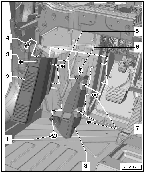 • Removing and installing, refer to => [ Driver Footrest Cover ] Trim