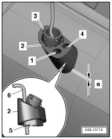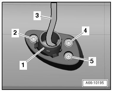 - Remove the mirror base - 2 - from the door and guide the electrical wiring harness - 4 - through the hole.