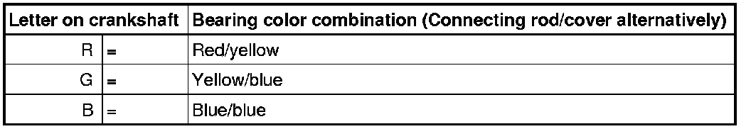 • The crankshaft is allocated to connecting rod bearing shells of the proper thickness at the factory. Colored dots on sides of bearing shells serve for identifying bearing shell thickness.