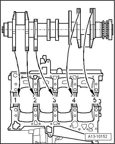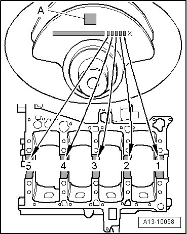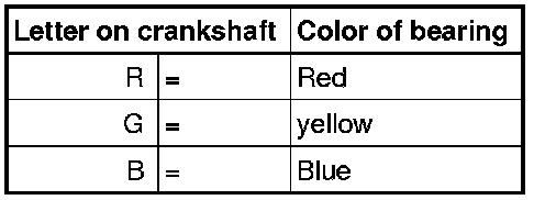• Allocation of bearing shells to cylinder block is marked by one letter each at left front on cylinder block (can be read from outside) as shown in the illustration.