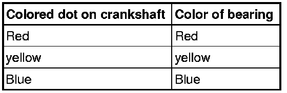 • Bearing shells with the correct thickness are allocated to the cylinder block in the factory. Colored dots on sides of bearing shells serve for identifying bearing shell thickness.