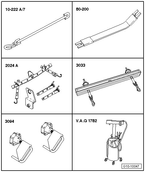 • Engine and Transmission Holder (VAS 6095) with V8 FSI Engine Holder (VAS 6095/1-6A)