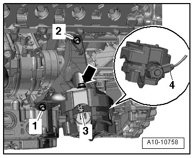 - Remove bolts - 1, 2 and 3 - and the engine support.