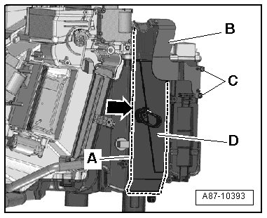 - Clean the evaporator installation shaft - B - in the A/C unit.